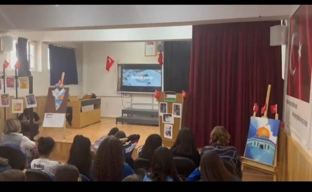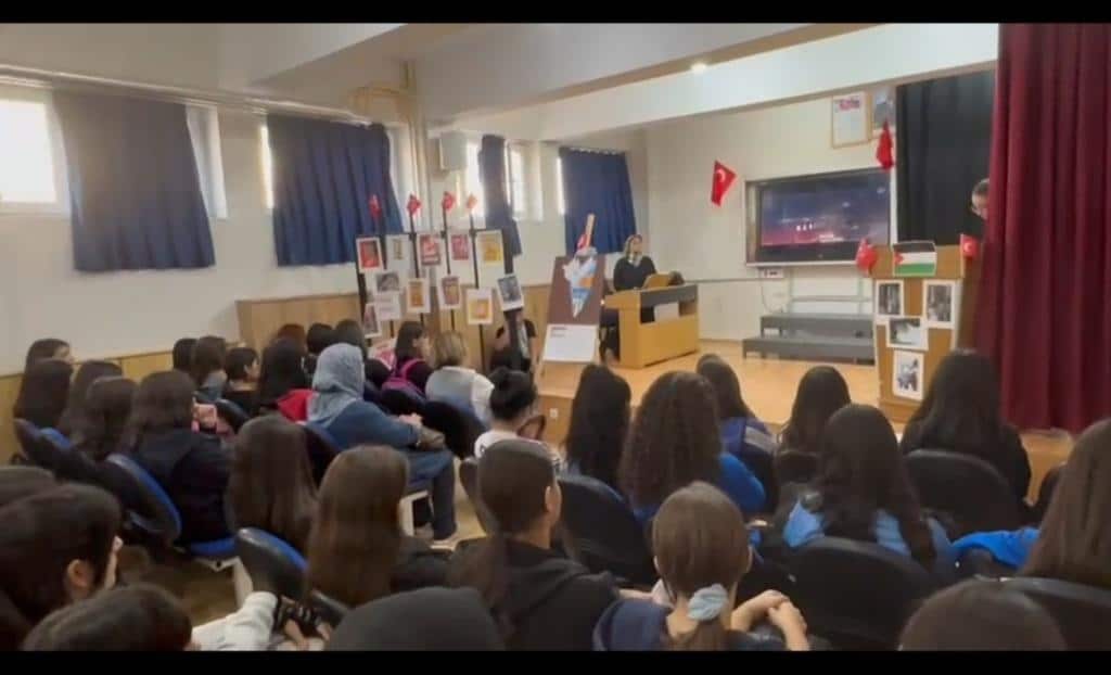 Milli Eğitim Bakanlığımızın "Filistin Farkındalık Etkinlikleri "kapsamında Erdem ,Değer ,Eylem modeliyle bütünleştirecek, evlatlarımızın sorumluluk bilincinin eleştirel düşüncelerinin demoratik duyarlılılıklarının ve insan hakları bilincinin artması konulu Filistin etkinliğimizi okulumuzda coşkuyla gerçekleştirdik. Bu değerli çalışmalarda emeği geçen yönetici, öğretmenlerimize ve öğrencilerimize teşekkür ediyoruz.